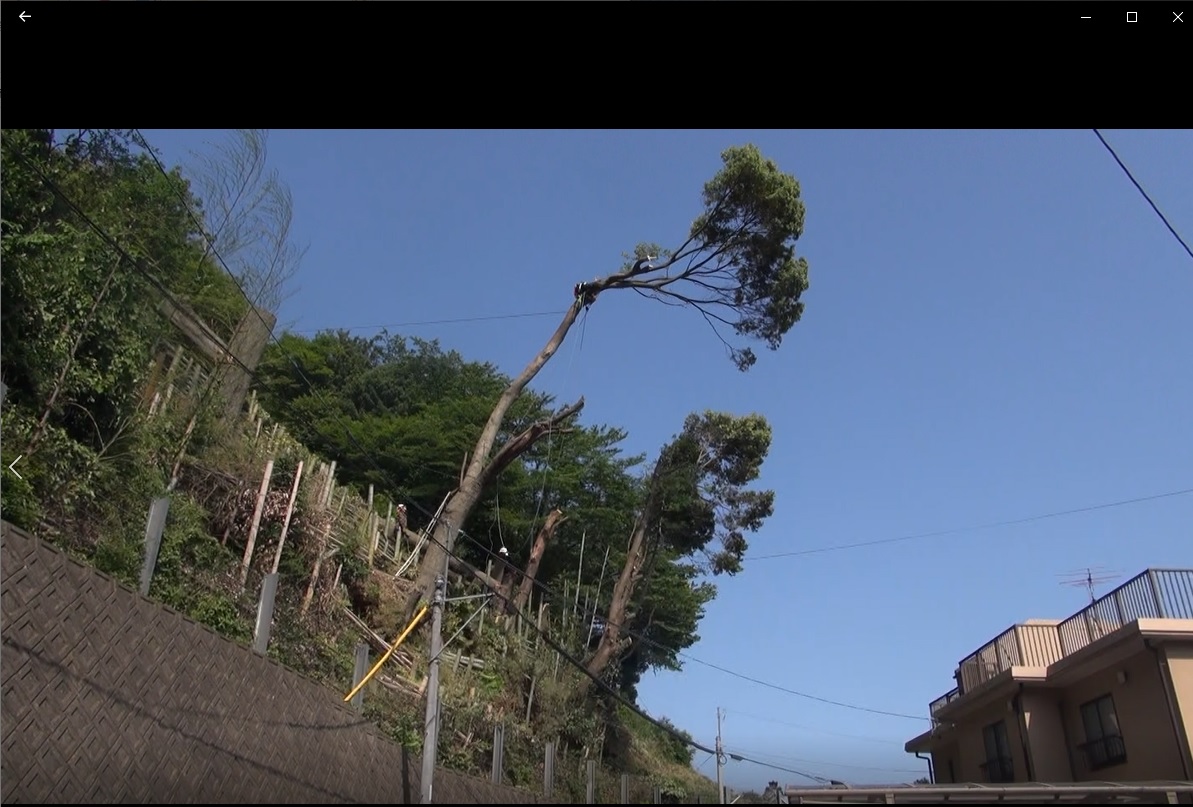 住宅裏山の急傾斜地での特殊伐採